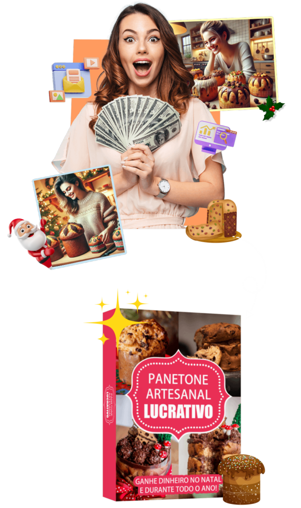 Estamos oferecendo o Panetone Artesanal Lucrativo, um eBook completo com 35 receitas deliciosas de panetones artesanais por apenas R$ 29,99, super valiosas para criar um negócio lucrativo. Se você optar por pagar a quantia de R$ 39,99, você também receberá 4 bônus exclusivos, incluindo receitas para ceias de Natal e Ano Novo e treinamento de marketing para Whatsapp e Facebook.